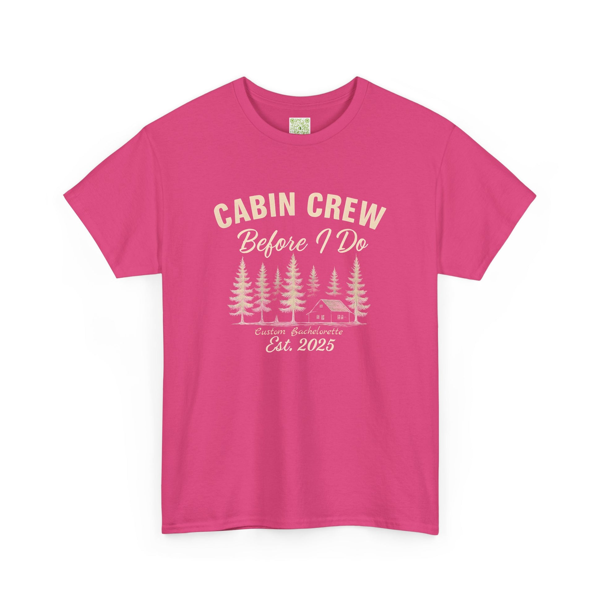 Introducing the Bachelorette Cabin Crew Cotton Tee, a stylish celebration of friendship and adventure, designed especially for those unforgettable last nights of fun before tying the knot. This bachelorette shirt is not just an ordinary tee; it’s a curated piece of apparel that seamlessly blends comfort with style. Think of it as the perfect canvas for your camp bachelorette—it captures the essence of your bond and the spirit of adventure. Crafted from soft, breathable cotton, its relaxed fit ensures all-day comfort, whether you’re lounging by a cozy campfire or embarking on a scenic hiking bachelorette retreat.