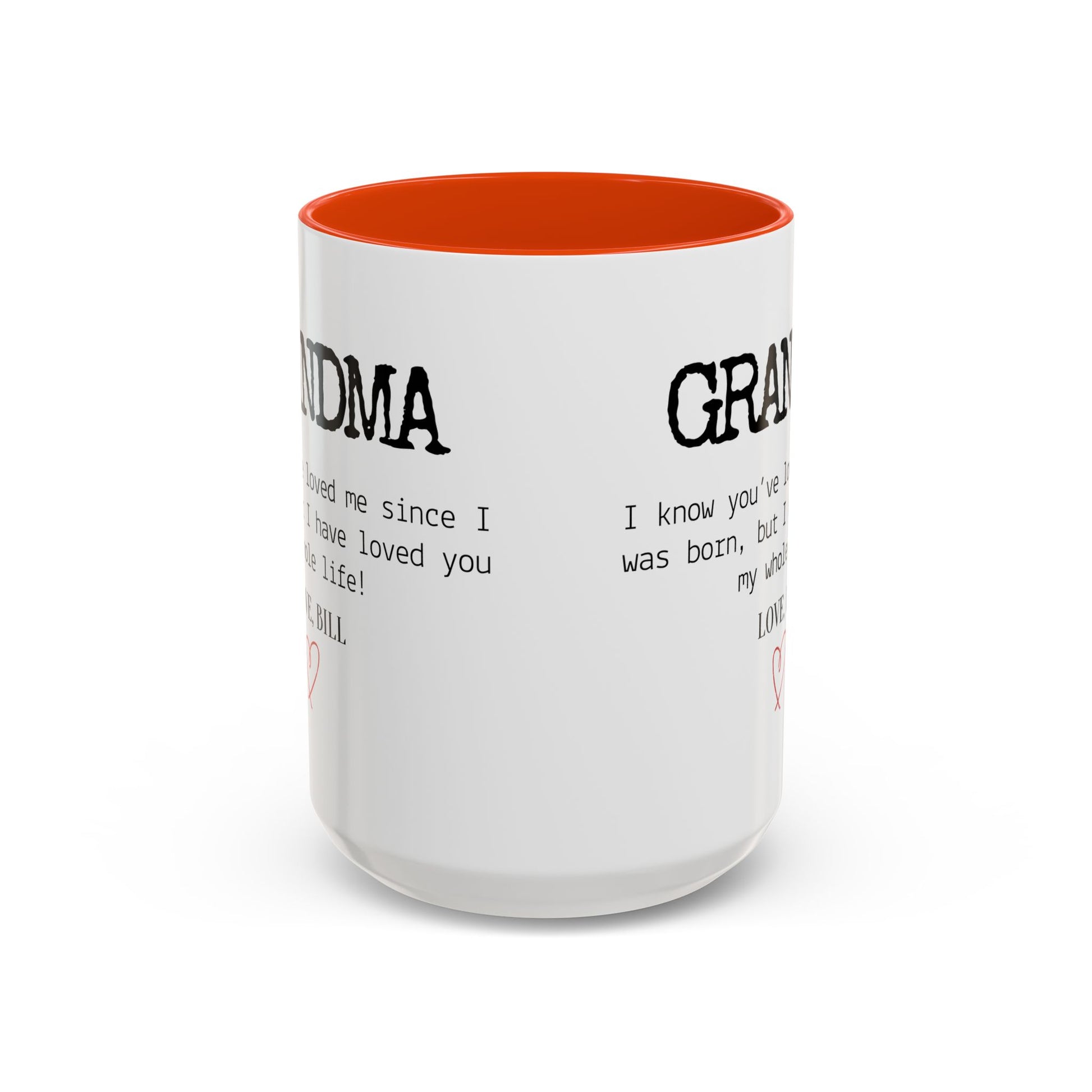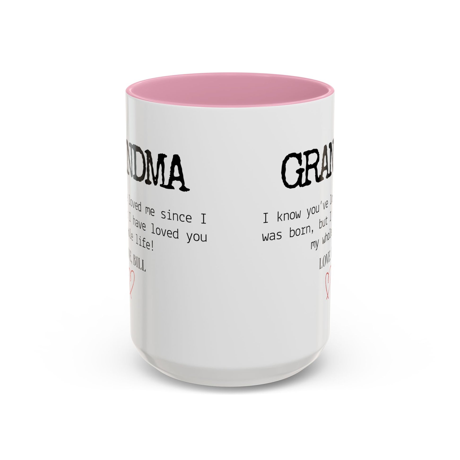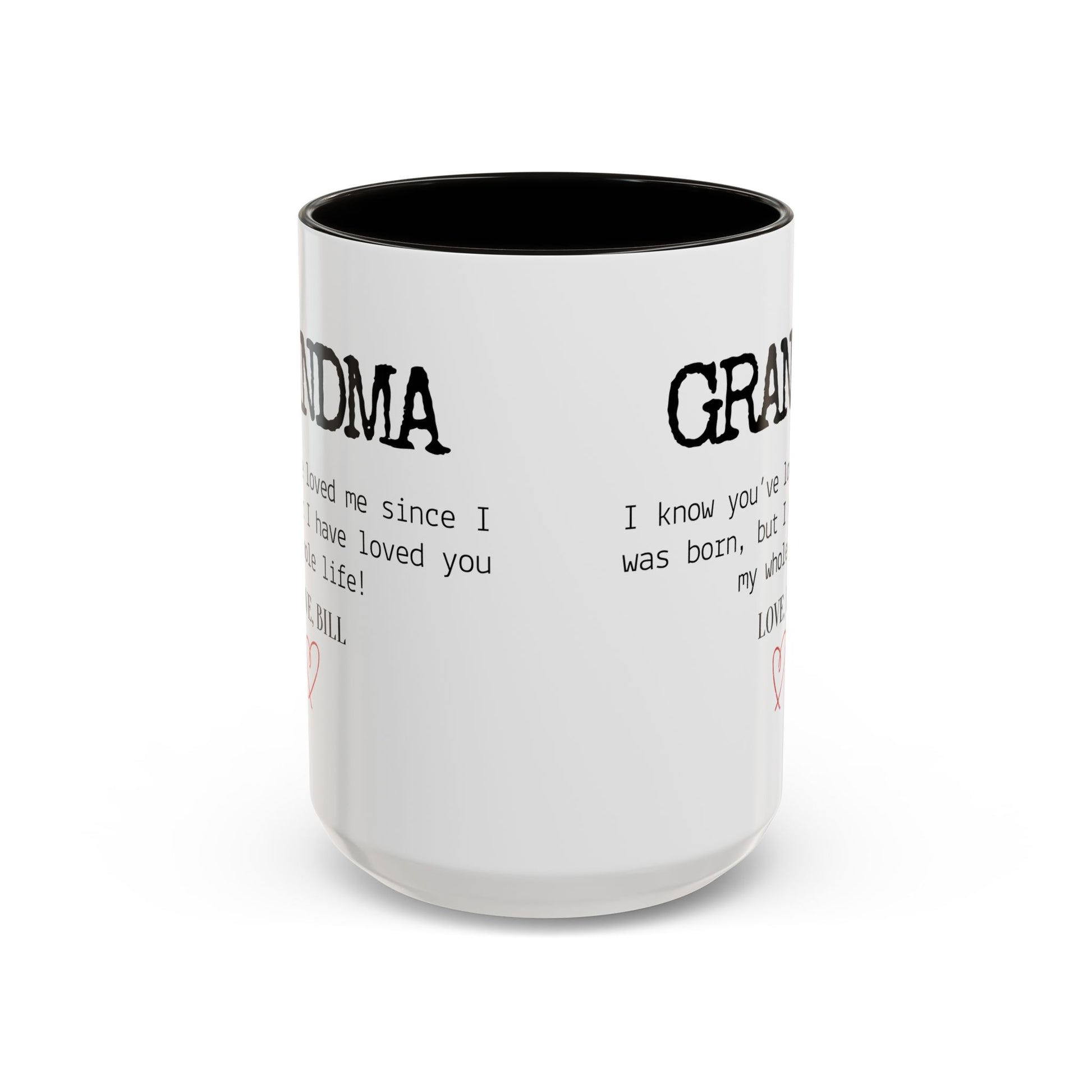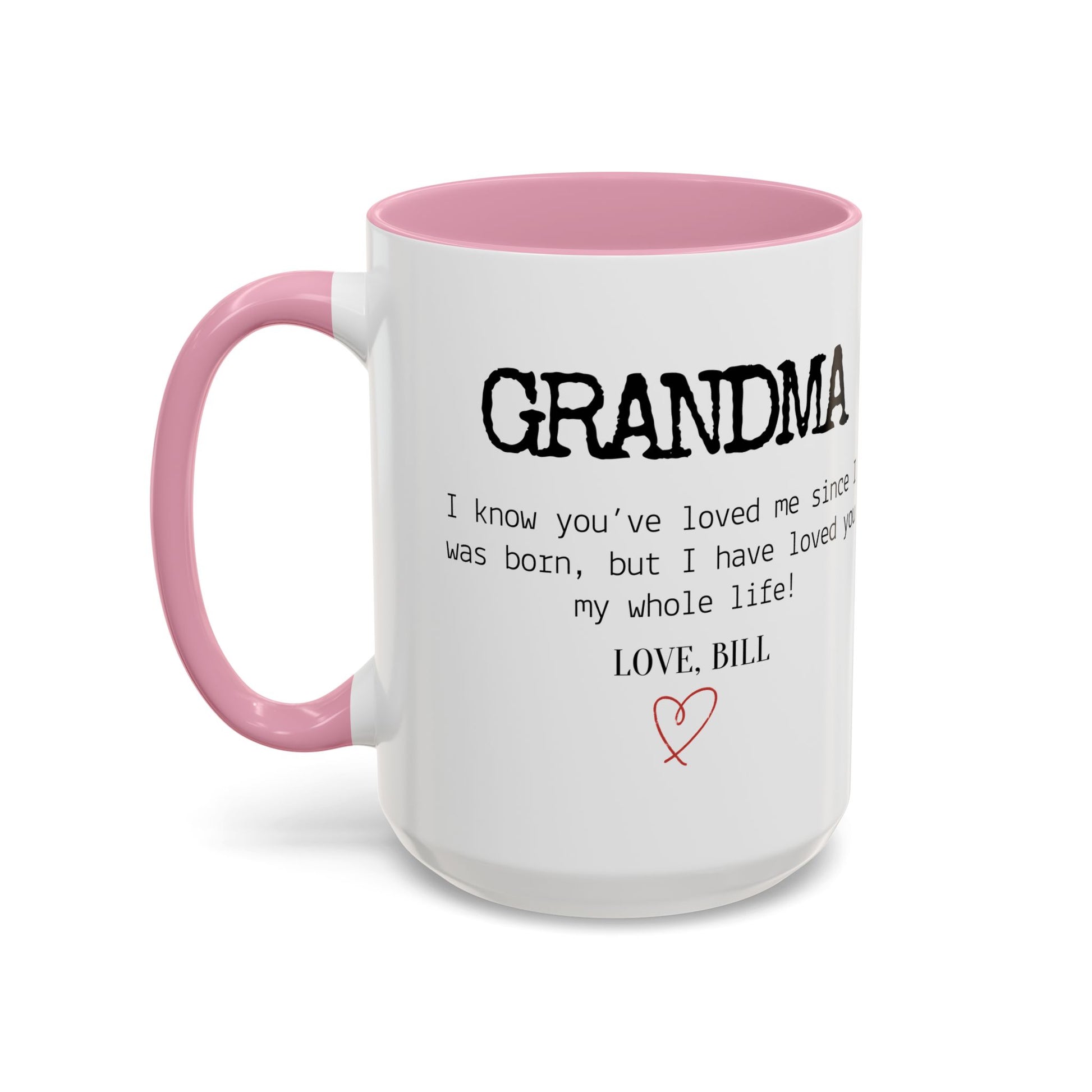 Celebrate Grandma’s unconditional love with this Personalized Grandma Love Message Mug, a thoughtful way to show her how much she means to you. The sweet message — “I know you’ve loved me since I was born, but I have loved you my whole life” — paired with your custom name and a delicate red heart, creates a touching keepsake she’ll treasure every time she enjoys her morning coffee or tea.