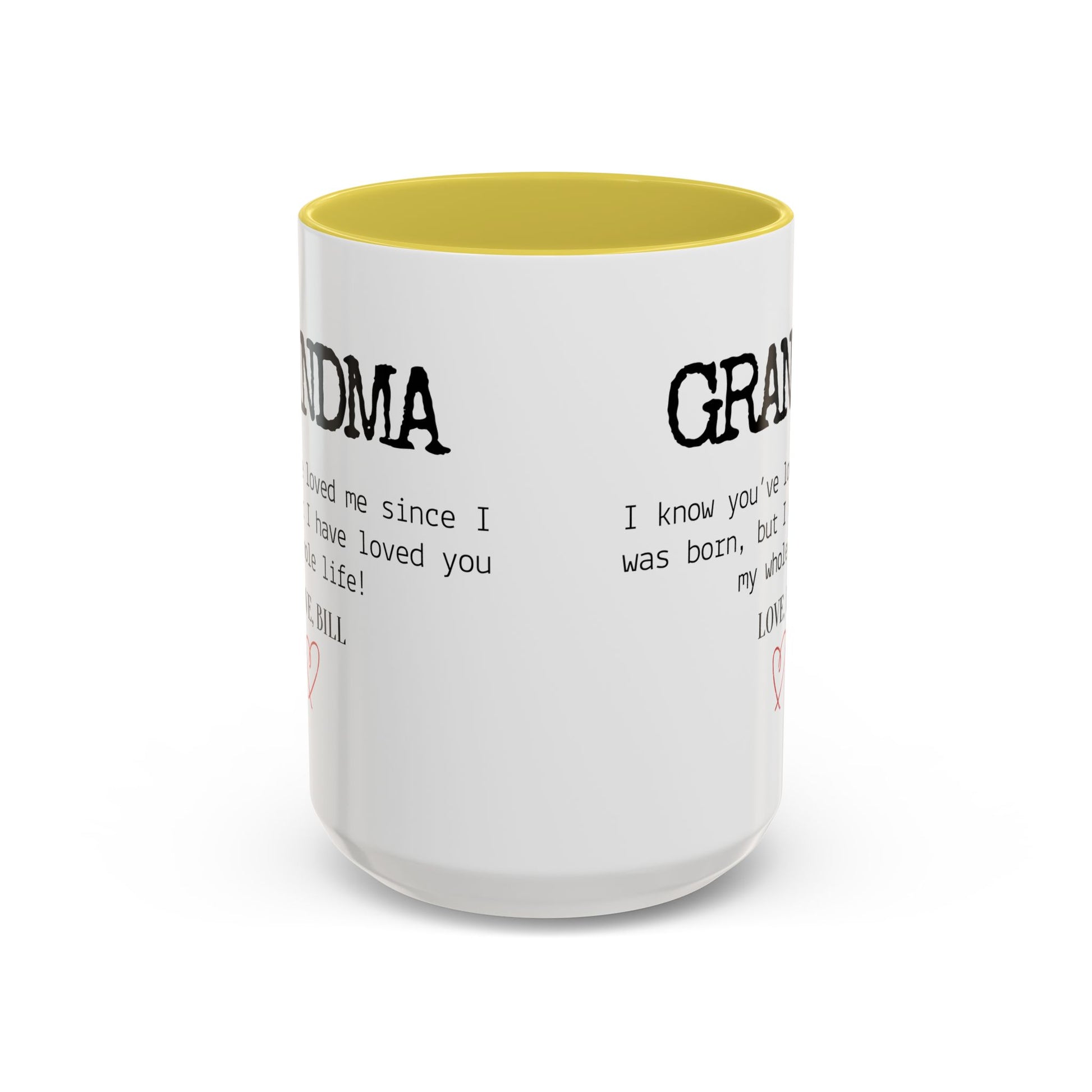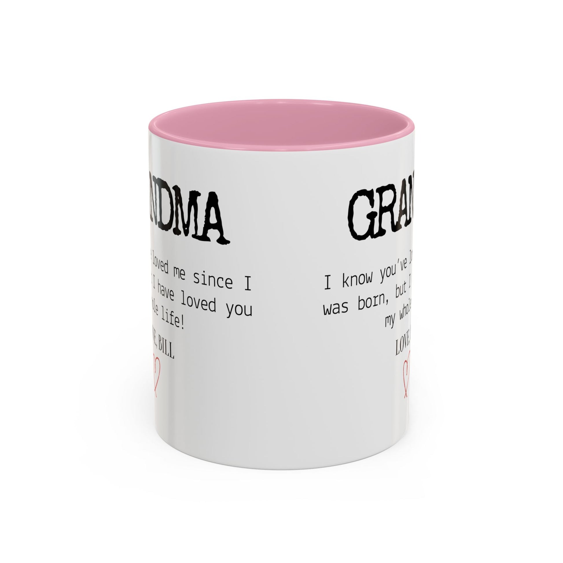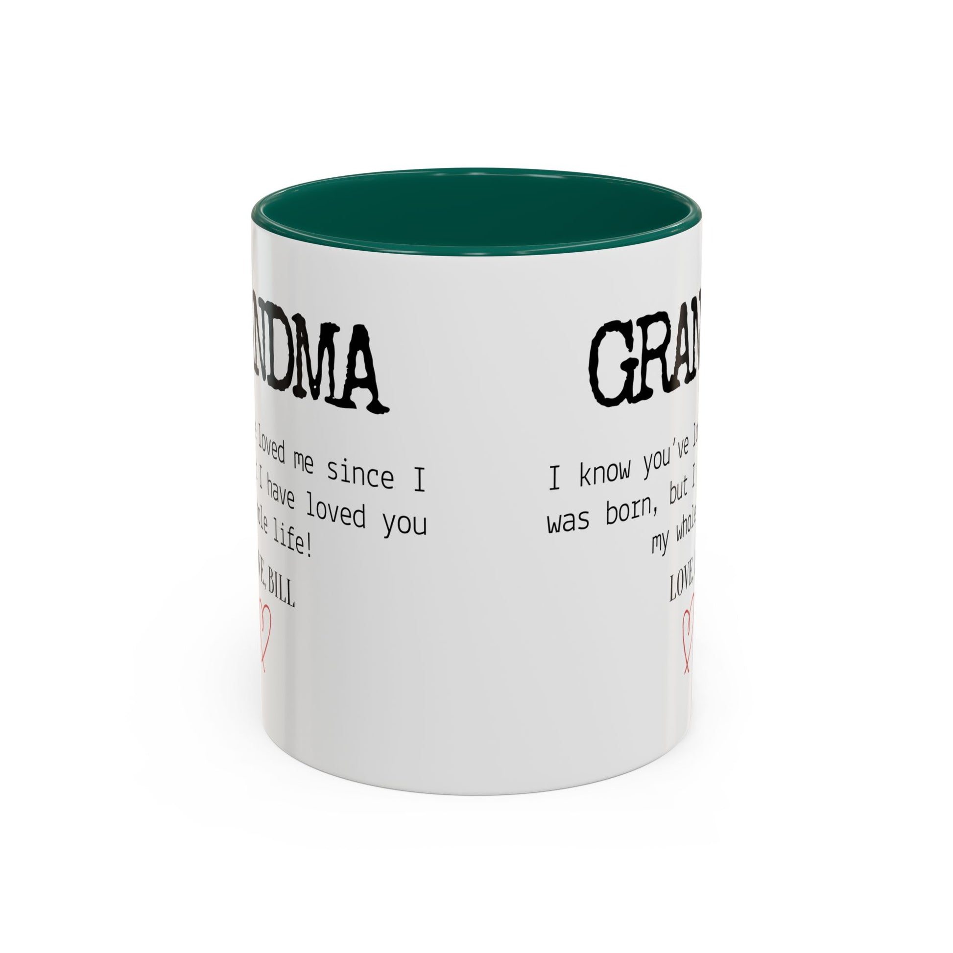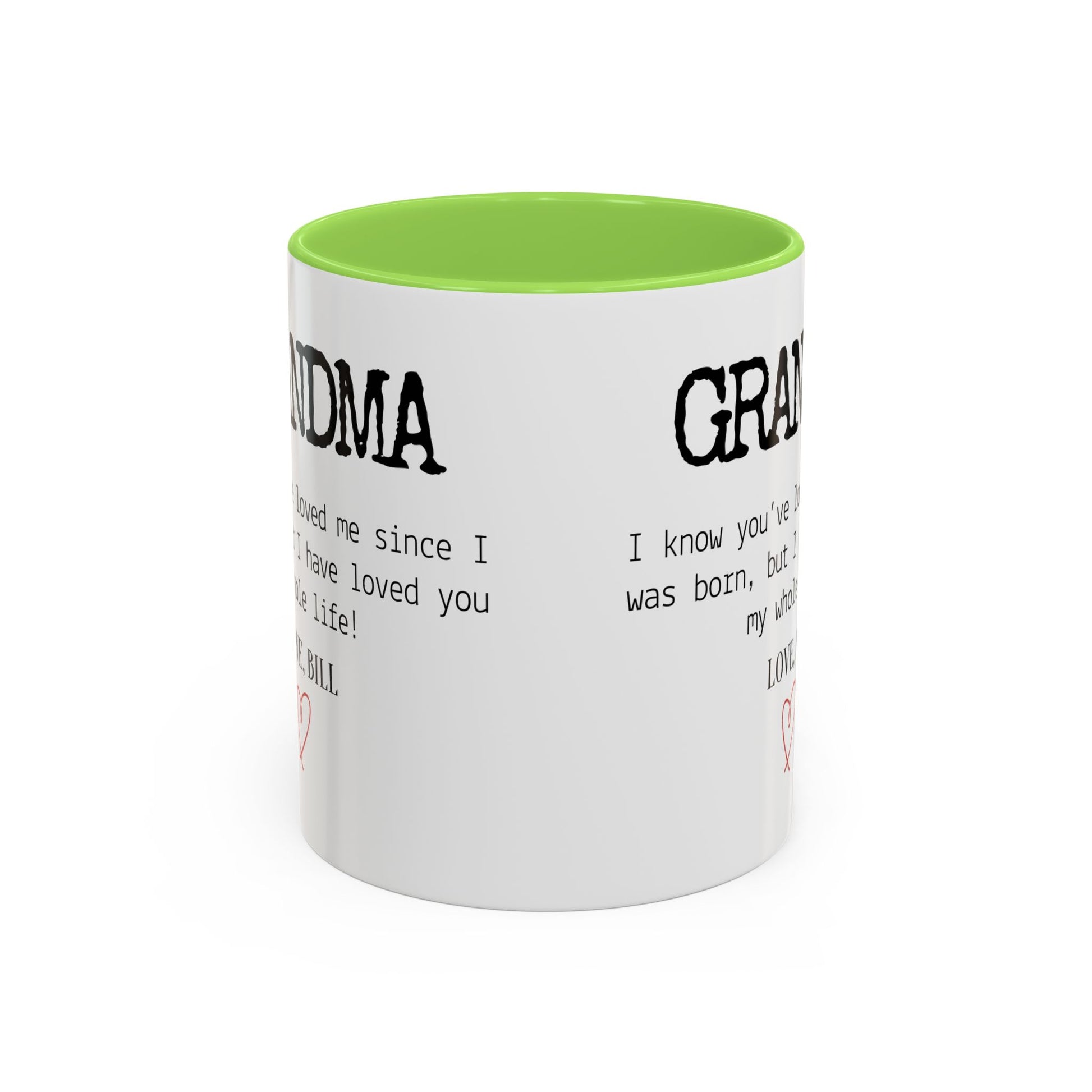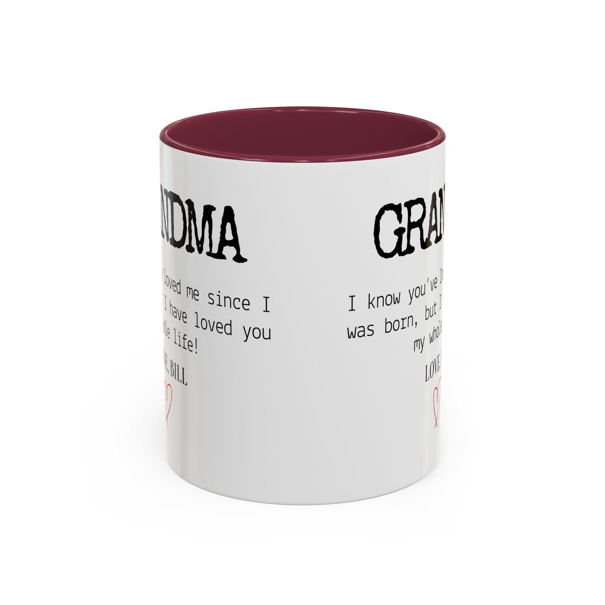 Celebrate Grandma’s unconditional love with this Personalized Grandma Love Message Mug, a thoughtful way to show her how much she means to you. The sweet message — “I know you’ve loved me since I was born, but I have loved you my whole life” — paired with your custom name and a delicate red heart, creates a touching keepsake she’ll treasure every time she enjoys her morning coffee or tea.