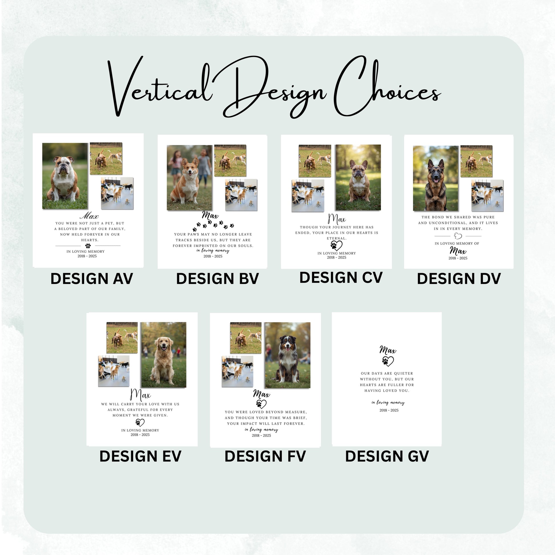 - Personalized photo board designed to honor the memory of a beloved pet.