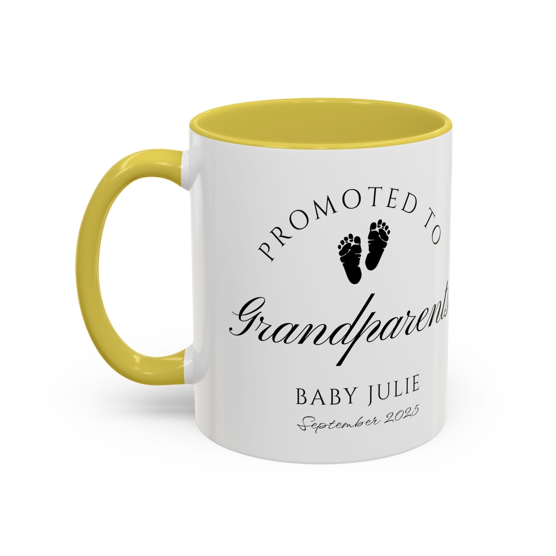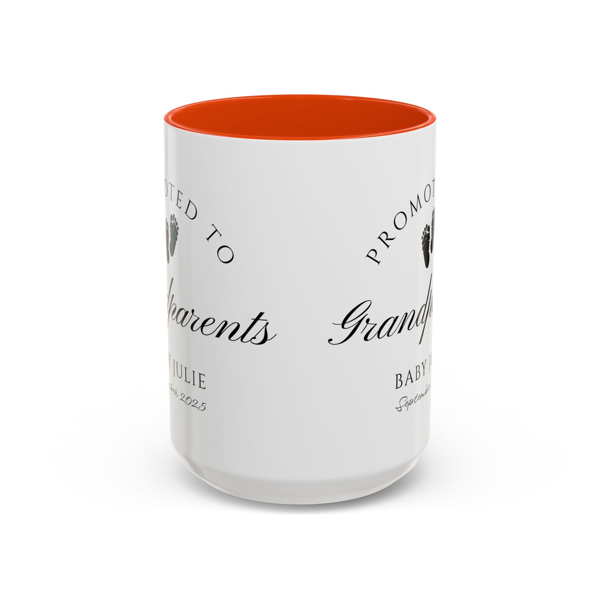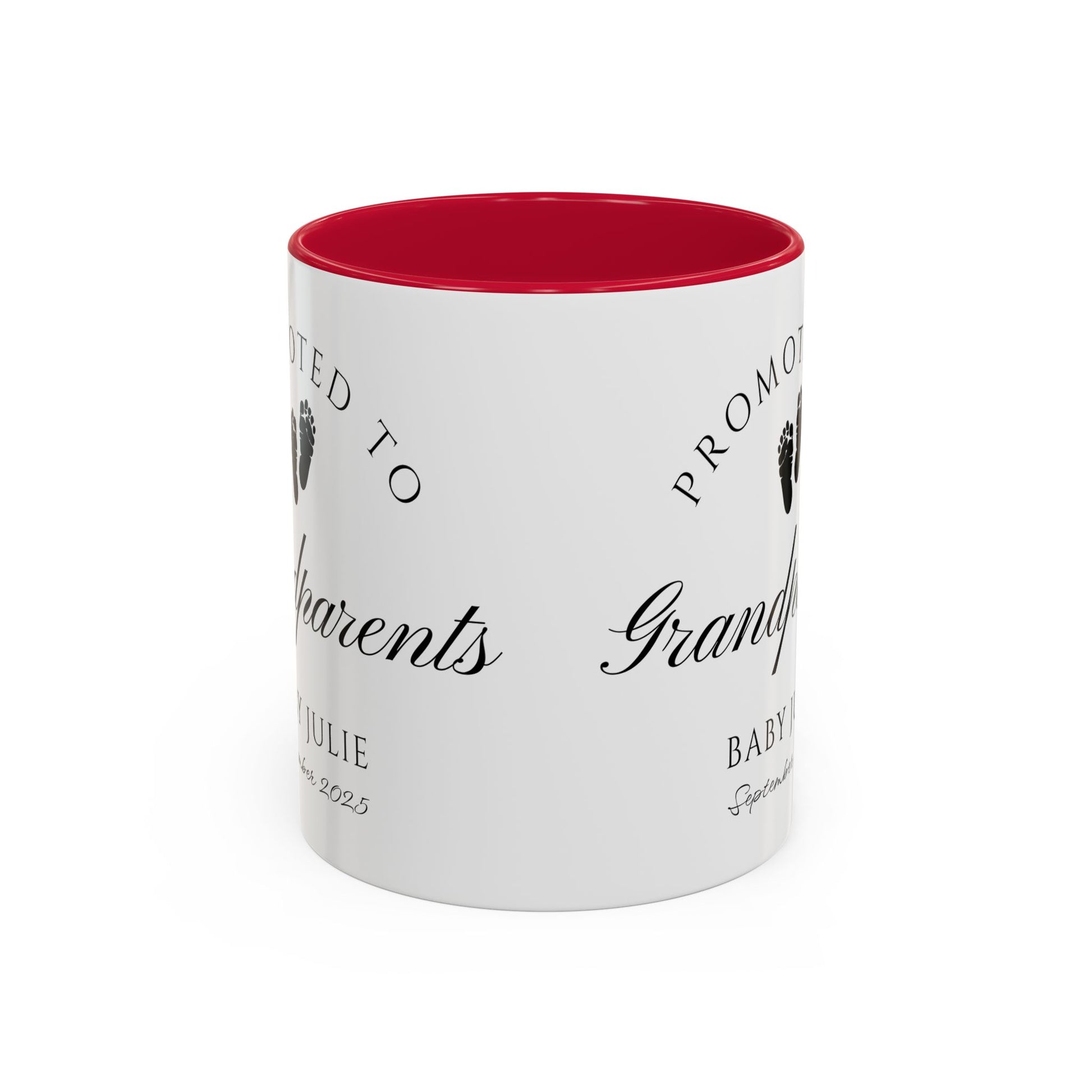 Celebrate one of life’s most beautiful milestones with this Promoted to Grandparents Mug, a heartfelt way to announce your pregnancy and surprise your family. The elegant black-and-white design with baby footprints makes it the perfect keepsake to commemorate the moment your parents officially become “Grandma and Grandpa.” Whether you reveal it over breakfast, gift it during the holidays, or wrap it for a family celebration, this mug is guaranteed to create smiles and happy tears.