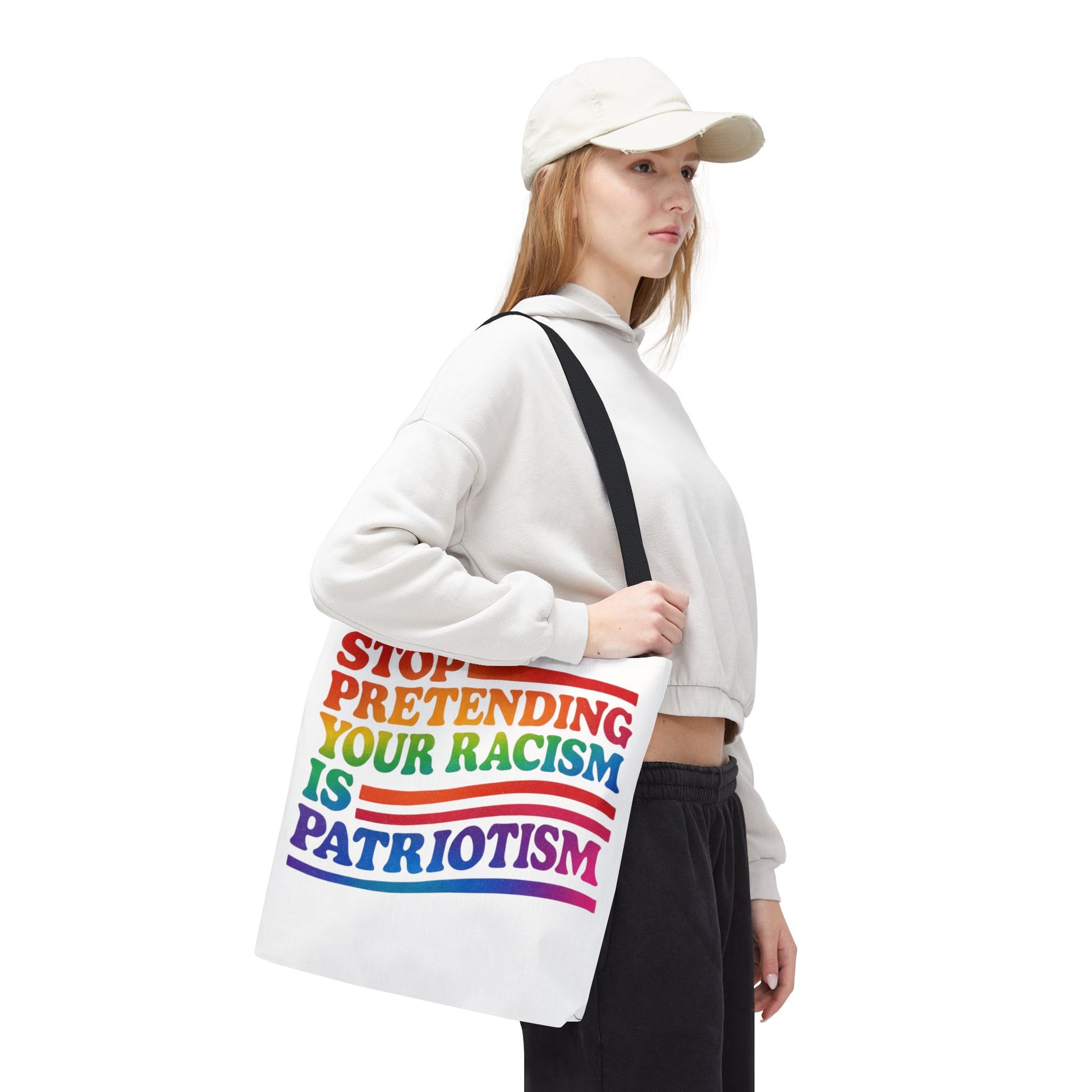 Pride Tote Bag, Stop Pretending Your Racism is Patriotism Tote, Pride Month Tote, Gay Tote, Equal Rights Tote, LGBTQ+ Support